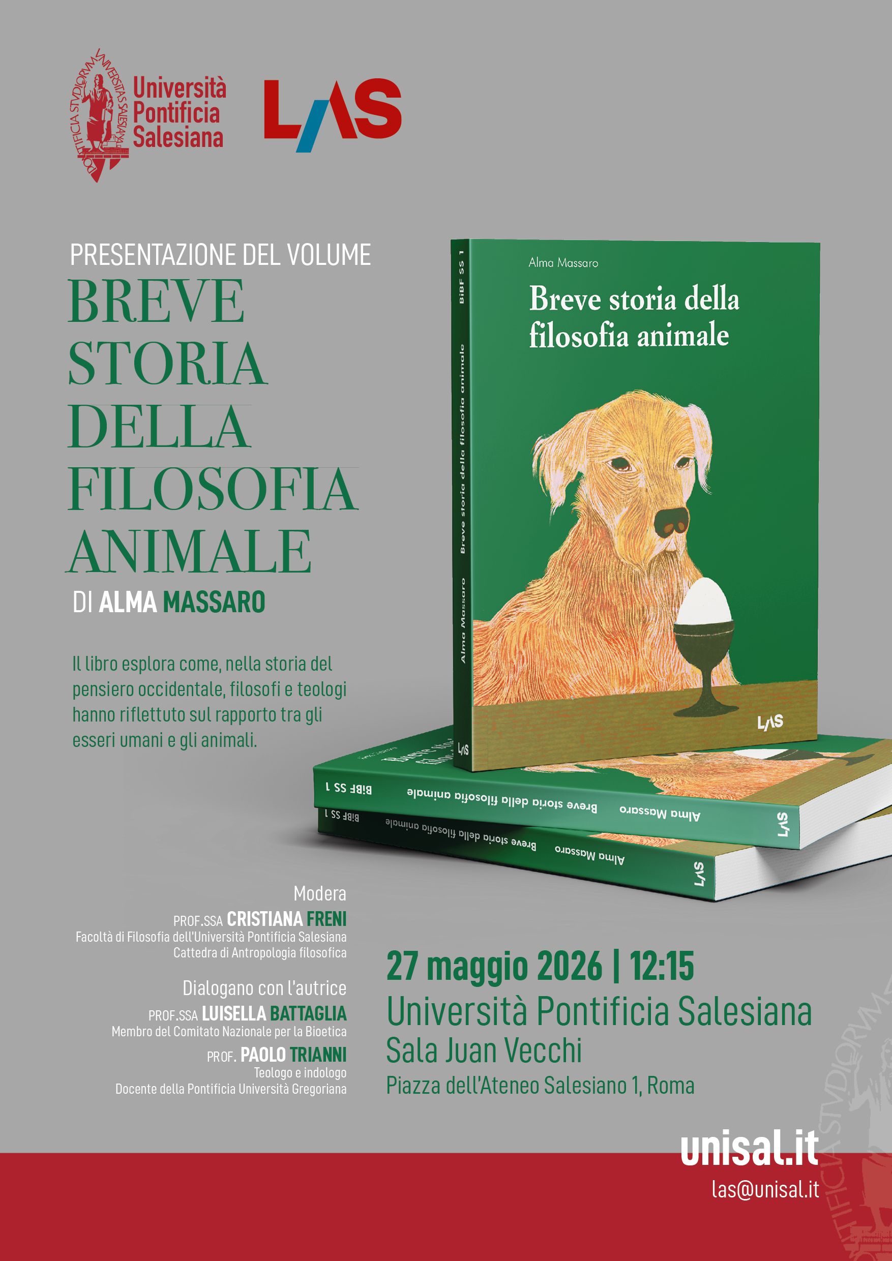 Presentazione libro: Breve storia della filosofia animaleIl volume Breve storia della filosofia animale, a cura di Alma Massaro e pubblicato da LAS, ripercorre le principali riflessioni di filosofi e teologi sul rapporto tra esseri umani e animali nella storia del pensiero occidentale, offrendo strumenti preziosi per comprendere un tema oggi centrale nel dibattito pubblico, tra etica, ambiente e responsabilità. 12:15 |