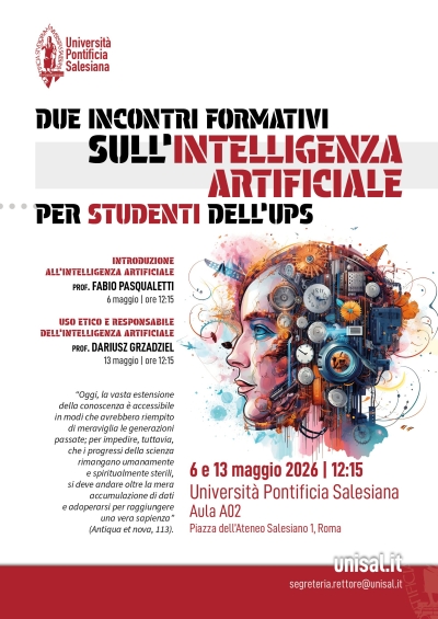 Intelligenza Artificiale: secondo incontro formativo per gli studenti dell'UPSIl secondo incontro, Uso etico e responsabile dell’Intelligenza Artificiale, sarà guidato dal prof. Dariusz Grzadziel e affronterà le implicazioni etiche, le responsabilità educative e le buone pratiche per un utilizzo consapevole degli strumenti di IA nella didattica e nella ricerca. Aula A02 12:15 |