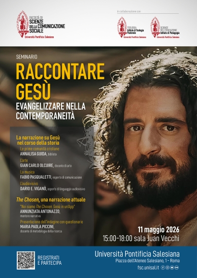 Raccontare Gesù. Evangelizzare nella contemporaneitàSeminario inaugurale di un progetto di ricerca multidisciplinare che prende spunto dalla serie TV The Chosen, interessante caso di studio per esplorare le relazioni tra serialità audiovisiva, rappresentazione del sacro e coinvolgimento del pubblico. L’iniziativa è promossa dalla Facoltà di Scienze della Comunicazione sociale in collaborazione con l’Istituto di Teologia Pastorale e l’Istituto di Pedagogia. Sala Juan Vecchi 15:00 - 18:00 |