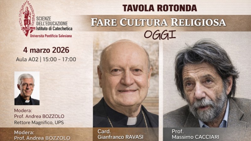 Mercoledì 4 marzo 2026, alle ore 15, presso l’Aula A02 dell'Università Pontificia Salesiana, si terrà una tavola rotonda dal titolo “Fare cultura religiosa oggi”, promossa dall’Istituto di Catechetica.